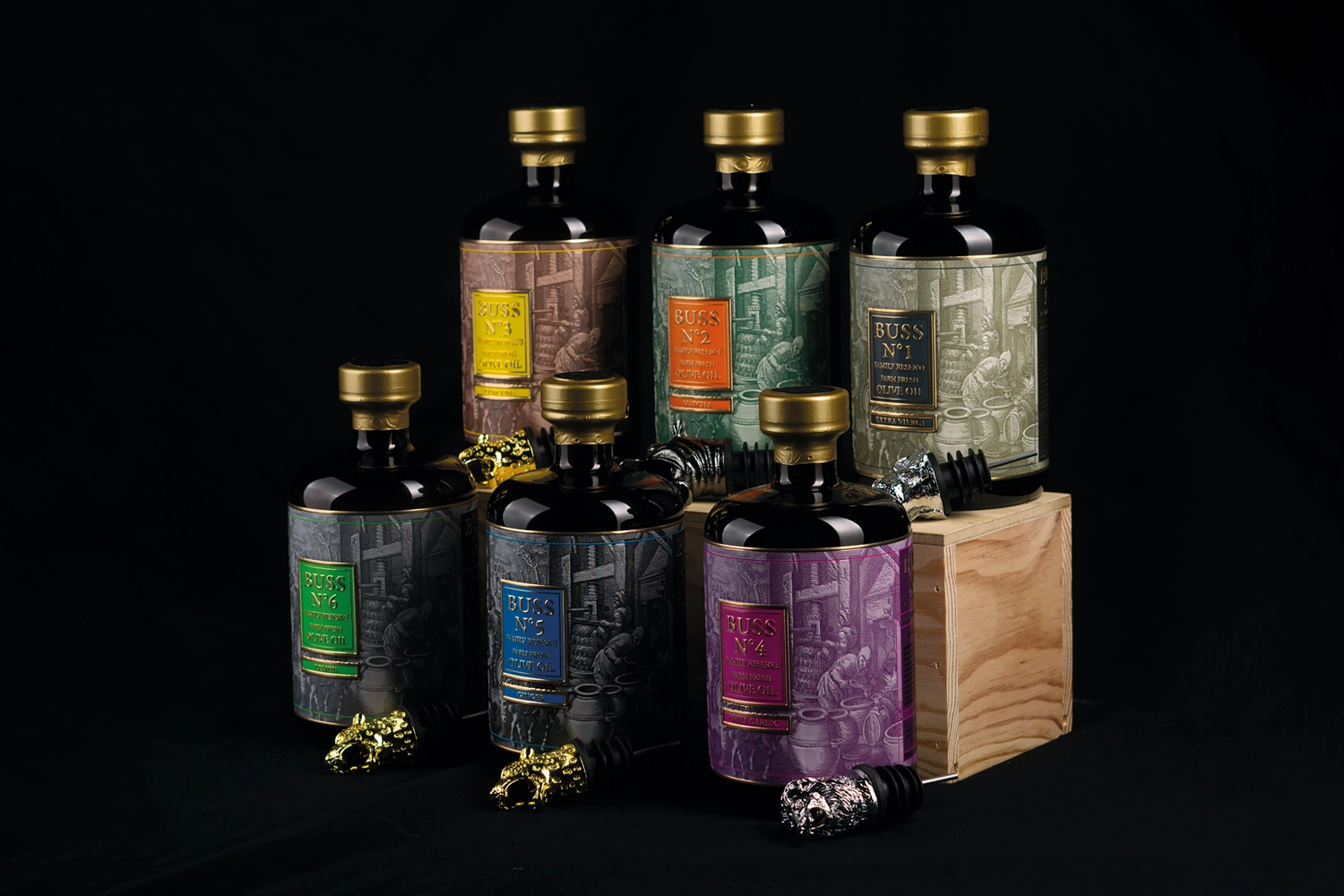 Buss Olijfolie presenteert zes unieke varianten voor zowel klassieke als experimentele gerechten. Elke variant is met precisie gecreëerd om specifieke smaakbelevingen te bieden, variërend van grassige en pittige tonen tot aromatische en kruidige nuances.